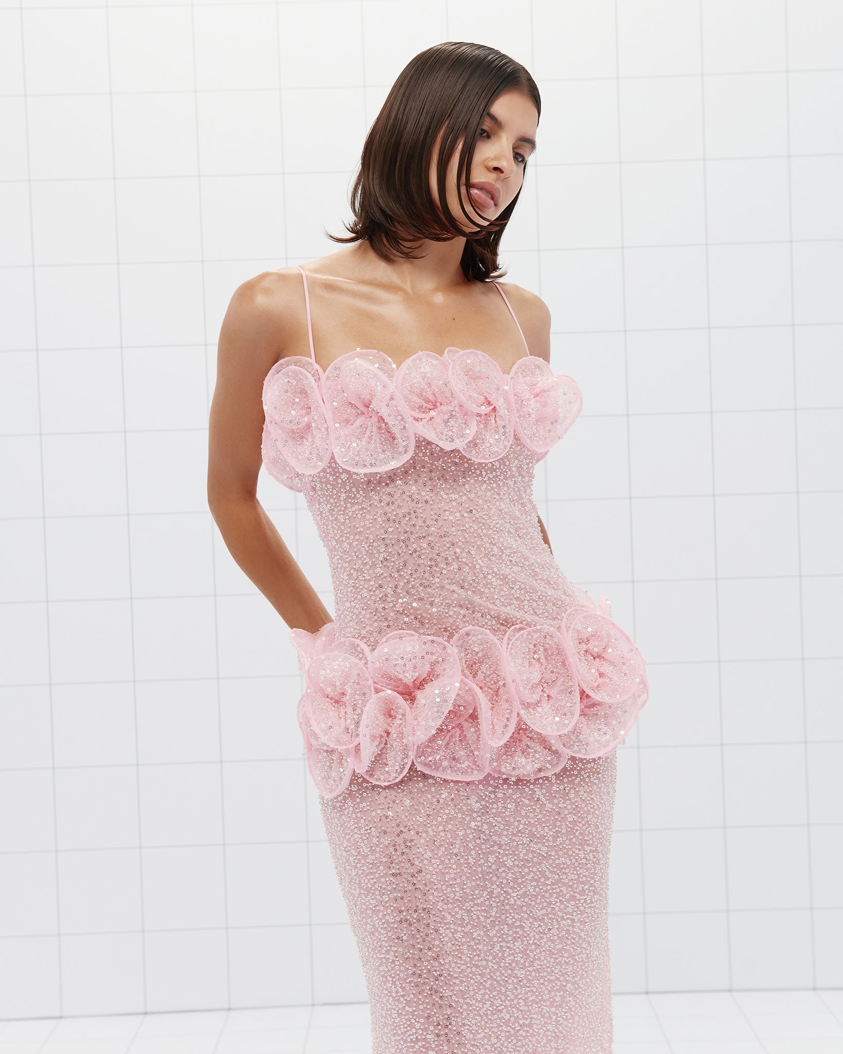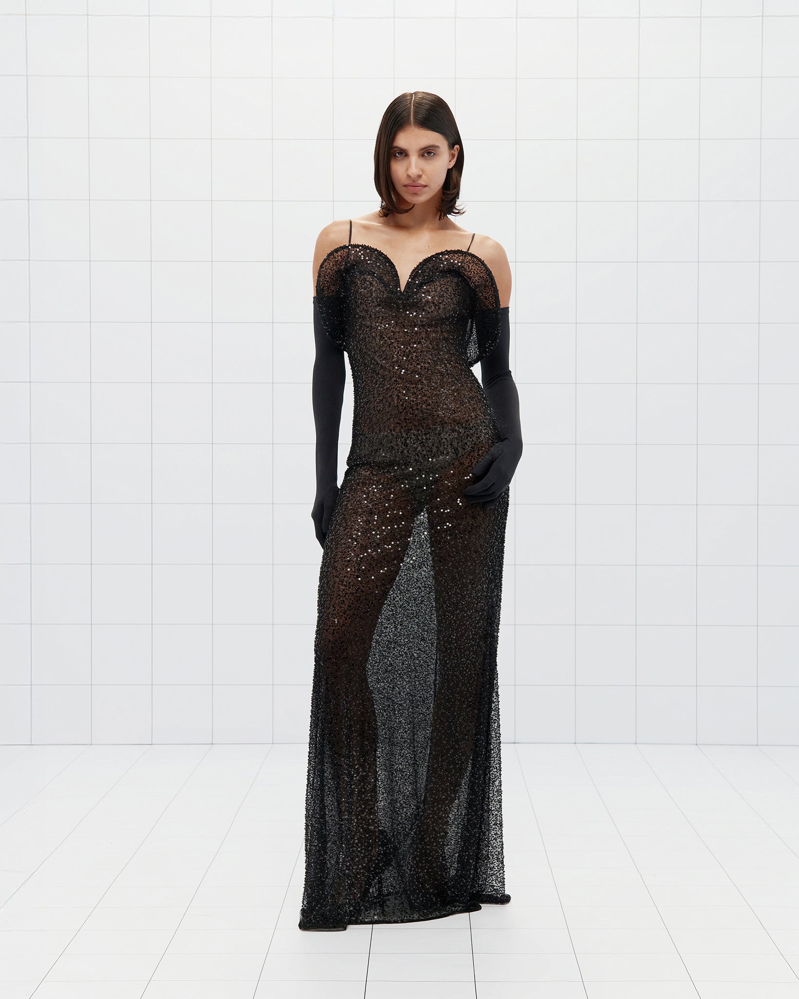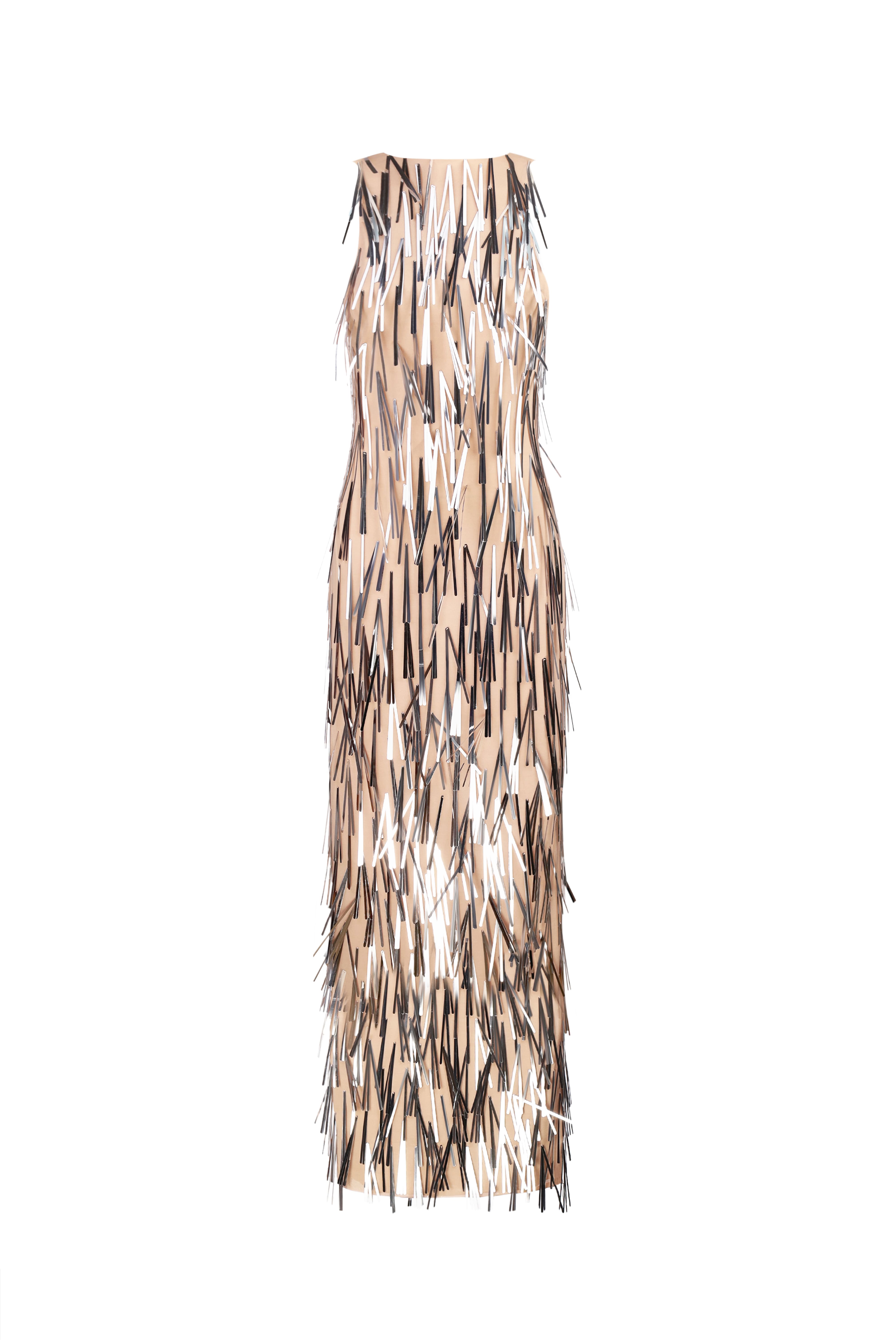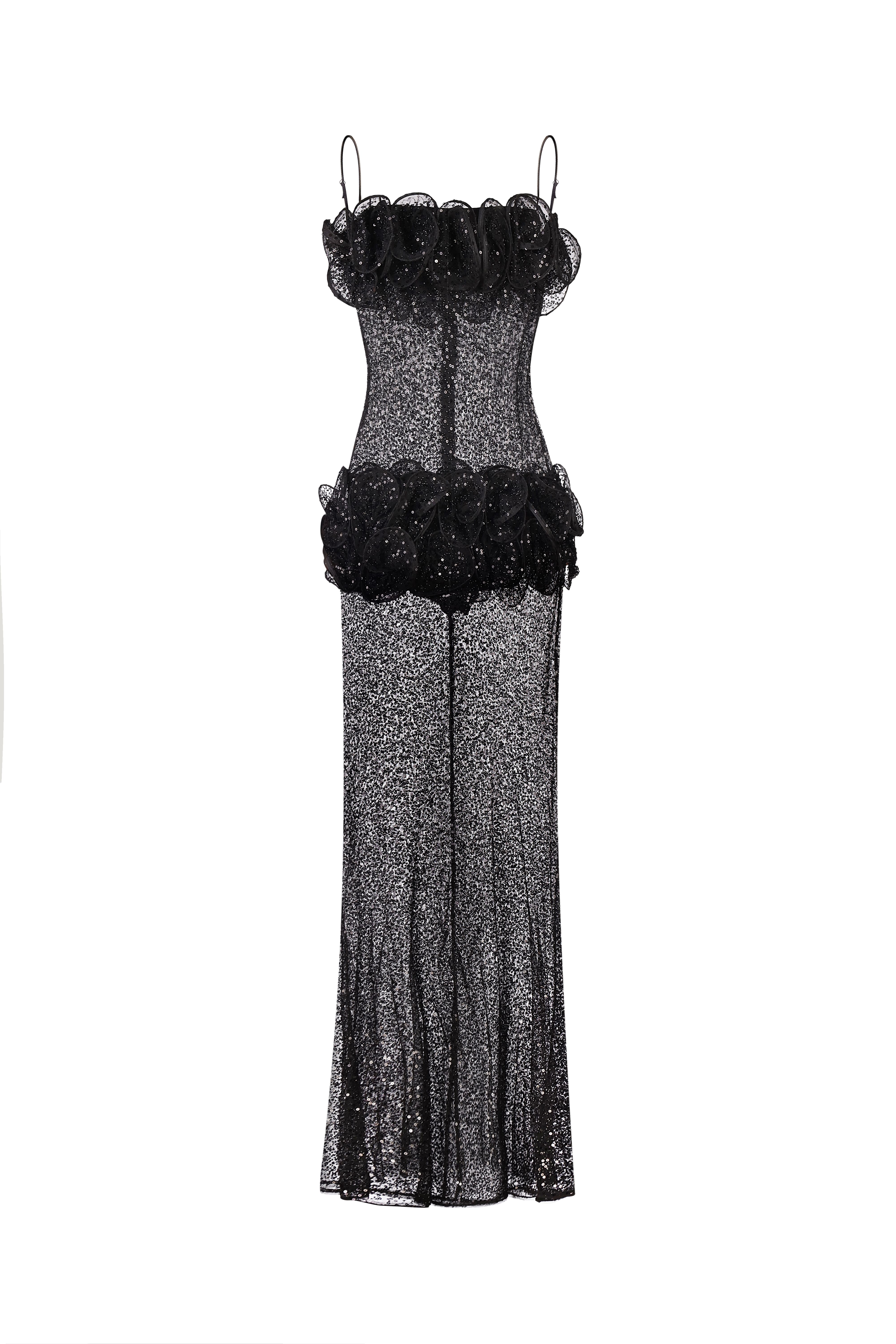 Semi-Sheer Beaded Maxi Dress