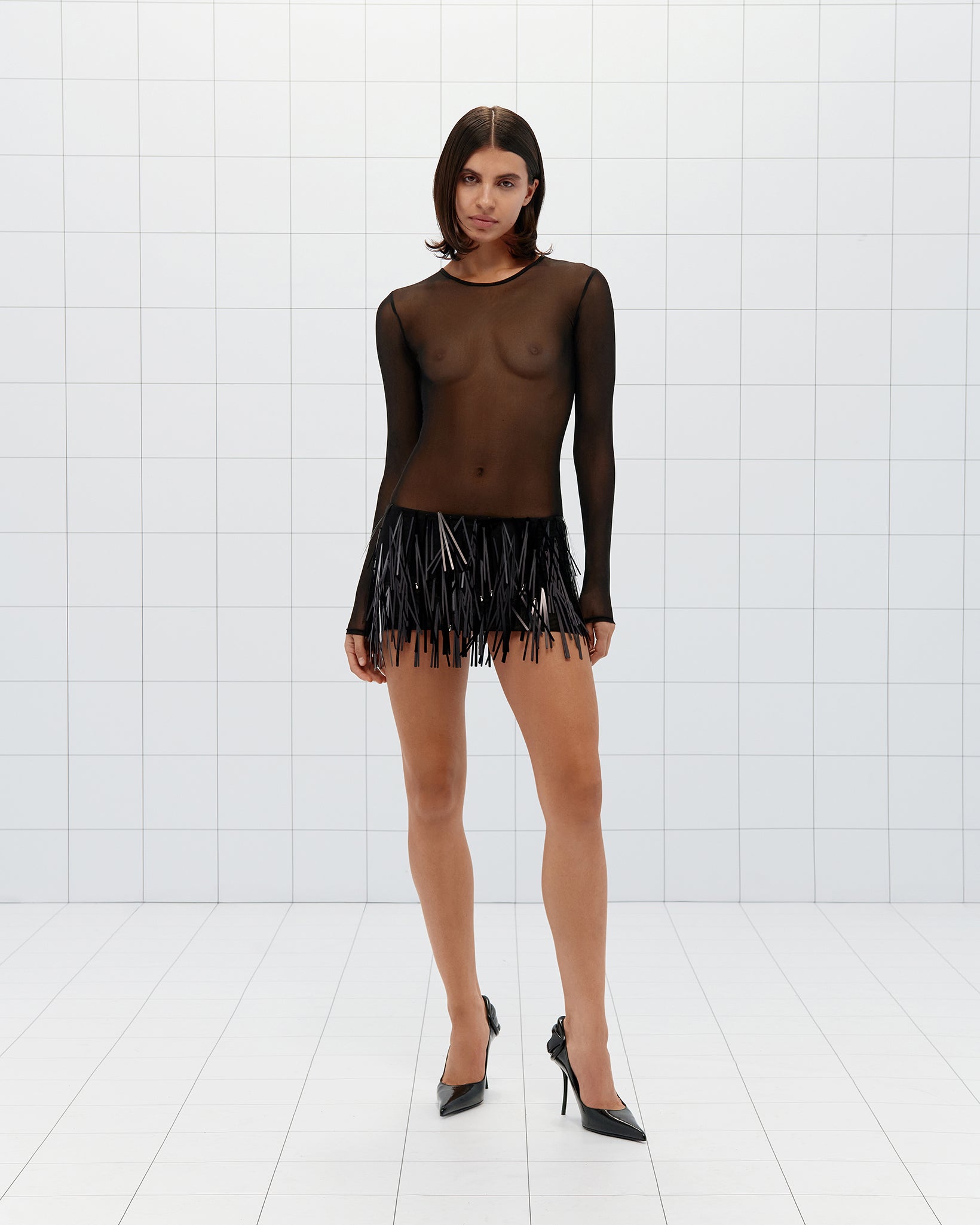 Beaded Tulle Mini Skirt